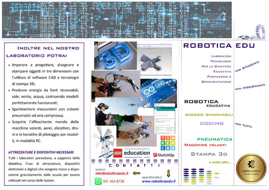 In alternativa, se preferisci, potrai scriverci all'indirizzo e-mail info@roboticaedu.it oppure inviarci un messaggio WhatsApp al numero +393314548738 e richiedere un contatto telefonico, saremo lieti di parlare con te e fornirti tutte le informazioni di cui hai bisogno.